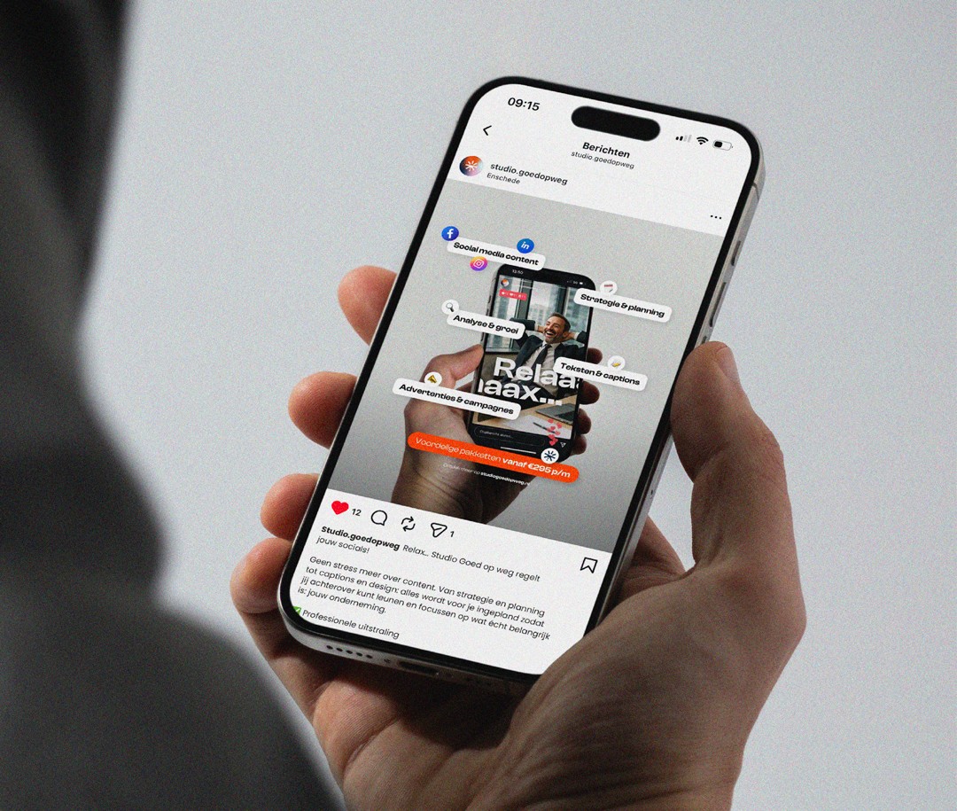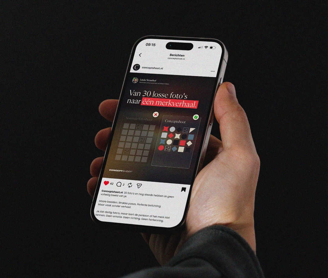 Sterke social media content valt of staat met de juiste tone of voice. Wat je zegt, hoe je het zegt en wanneer je het zegt, zijn net zo belangrijk als het beeld zelf. Daarom begint mijn werkwijze altijd bij strategie: wat wil je overbrengen, en waarom?