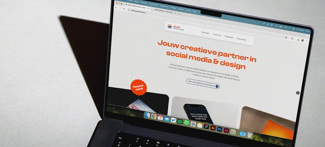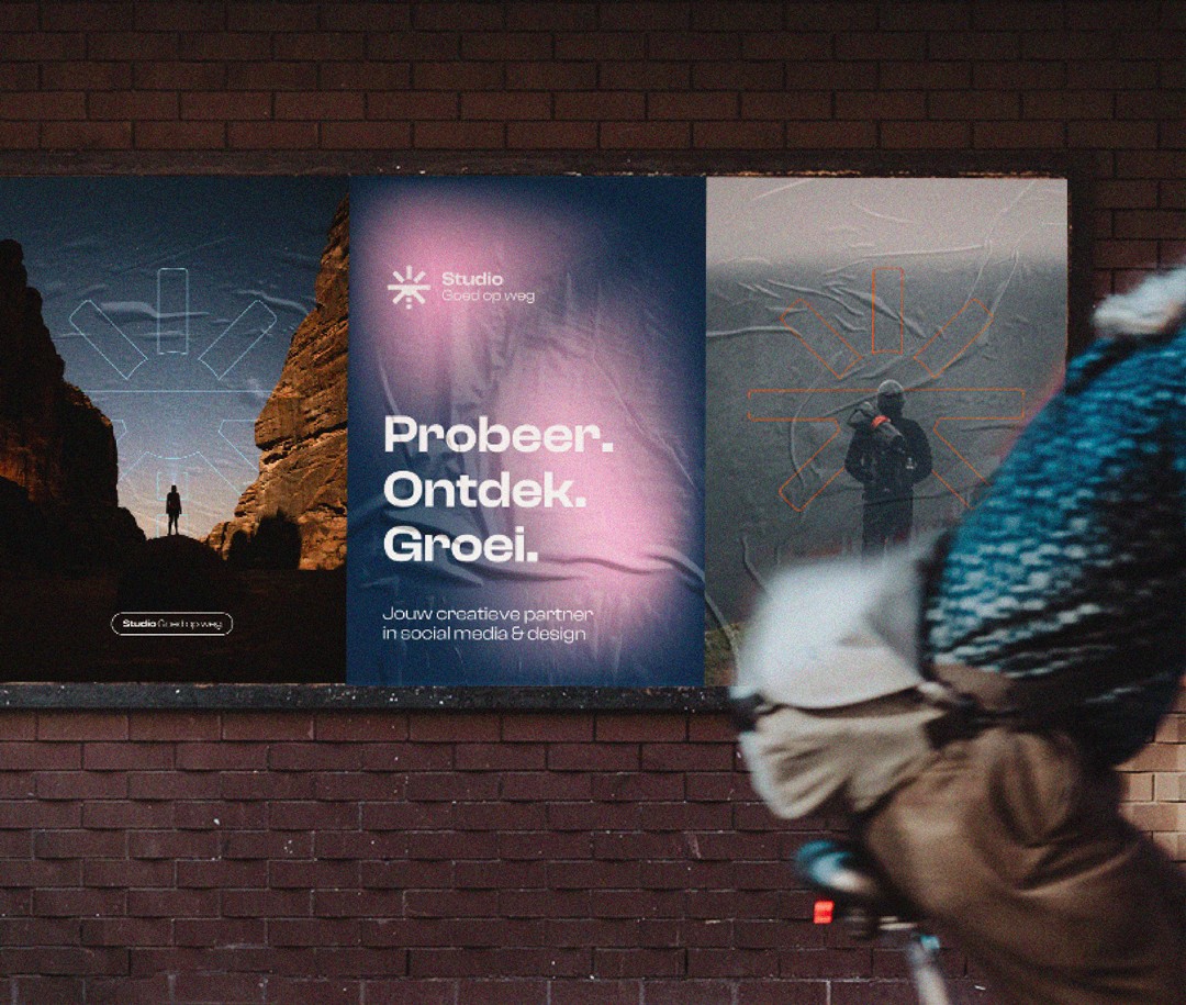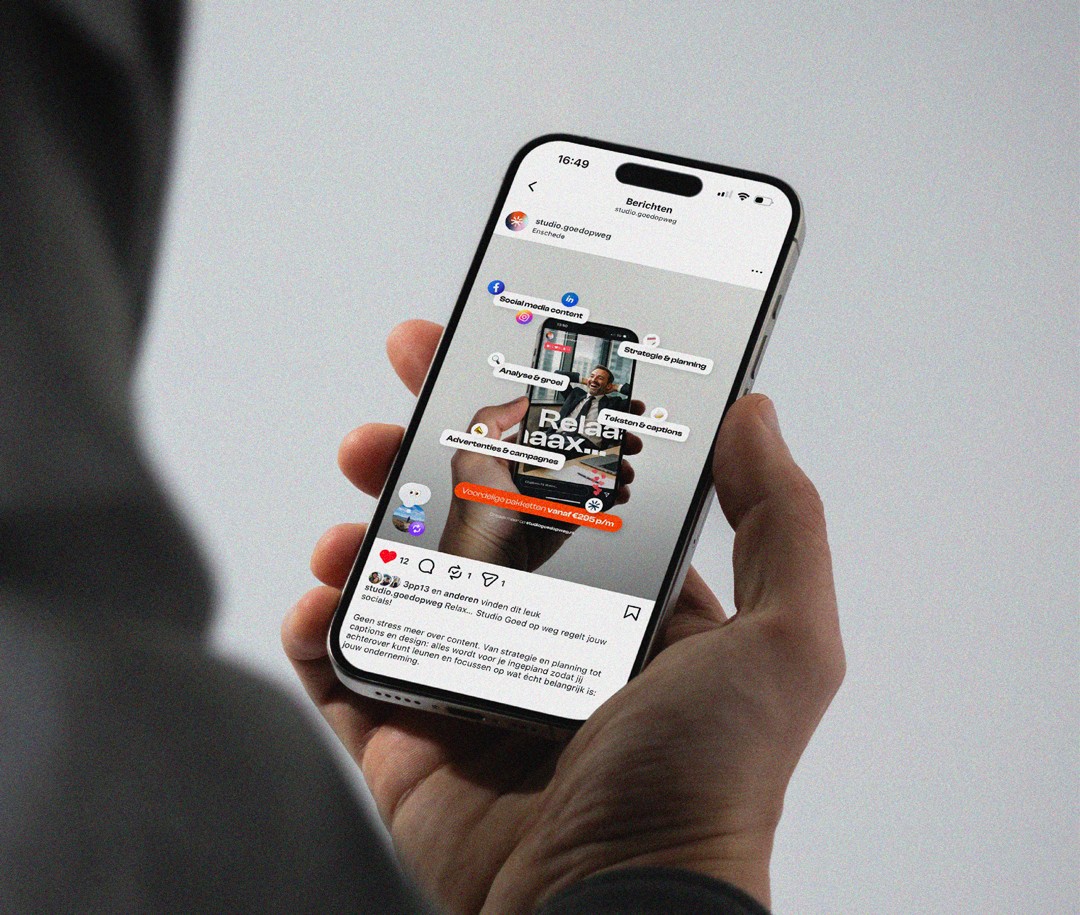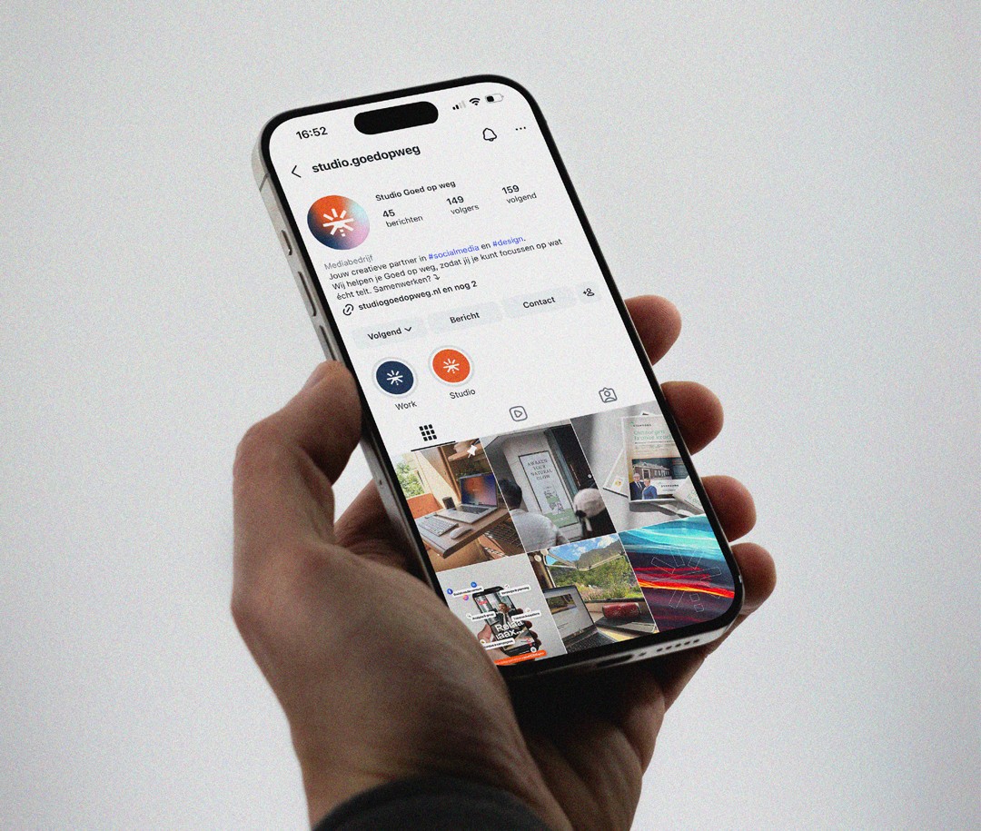 Naast branding en webdesign verzorg ik de social media content voor Studio Goed op weg. De focus ligt daarbij niet op losse posts, maar op samenhang over tijd. Met vaste formats, een duidelijke tone of voice en consistente visuals blijft het merk herkenbaar in een snel social landschap.
