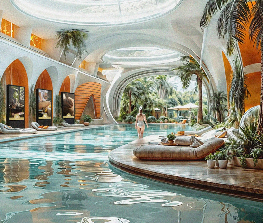 Door beelden te combineren, prompts verder aan te scherpen en opnieuw door Midjourney te laten genereren, werd elke ruimte stap voor stap verfijnd. Kleine aanpassingen in licht, perspectief en compositie maakten daarbij een groot verschil. Het doel was niet om perfecte plaatjes te maken, maar om consistentie te creëren. Elke ruimte moest onderdeel voelen van hetzelfde hotel, zonder dat het repetitief werd.