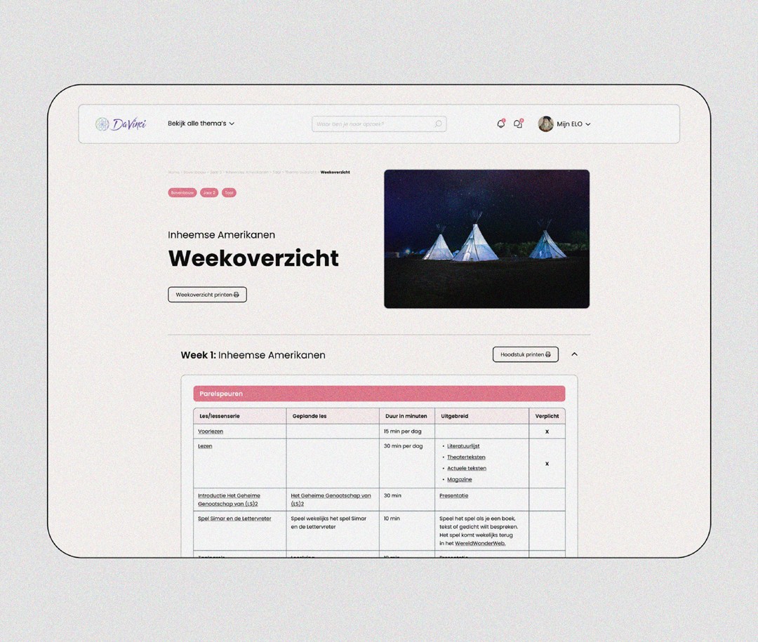 Tijdens mijn periode bij AlienTrick werkte ik aan het herontwerp van de elektronische leeromgeving (ELO) van de DaVinci Academie. De omgeving was gebouwd in Moodle en functioneerde technisch prima, maar miste overzicht, samenhang en visuele rust. Alles was aanwezig, alleen niet logisch geordend.